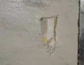 Remove all contaminants with a clean cloth. If needed, wipe with solvent (acetone, xylene, or toluene) and allow the surface to dry completely before proceeding. Sand or grind the repair area, extending at least 1½” beyond the damage. Remove gloss or texture until the surface has a uniform, abraded appearance, then blow or wipe away dust.