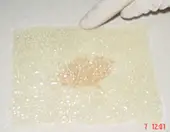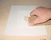 Choose the smooth or textured side depending on the final finish you want. Peel the nylon film from the side that will contact the surface. Place the exposed resin side onto the clean, dry, abraded surface, ensuring full coverage of the repair area.